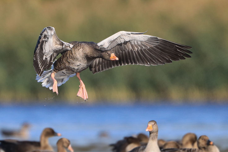 Graugänse, die nicht hier beringt wurden in Polen beringt. Jedoch werden auch im spanischen Winterquartier Graugänse markiert. Die Entfernung die eine solche, im spanischen Winterquartier beringte Gans bis nach Altfriedland zurücklegen musste, betrug immerhin 2322 km.