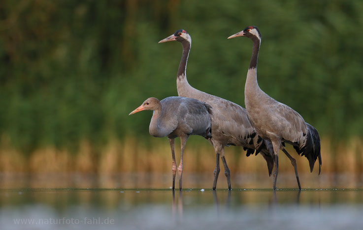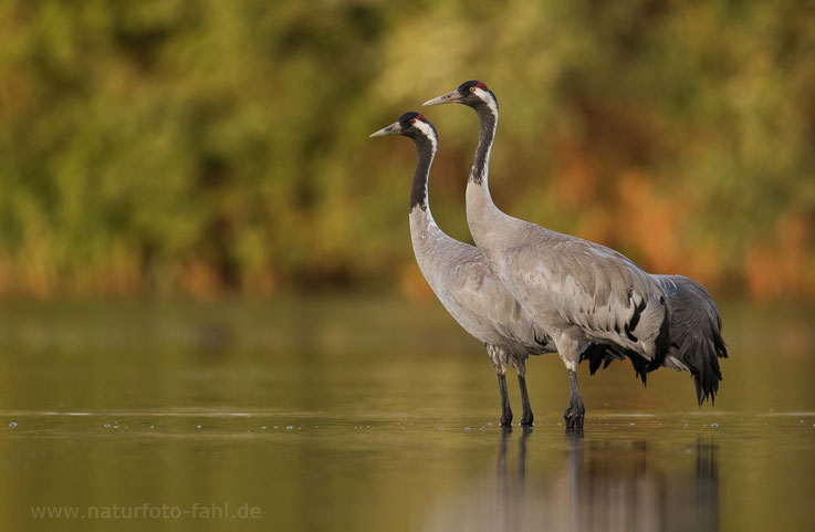 Im Brutrevier patrouillieren die Kraniche nicht nur laufend, sondern auch fliegend gemeinsam. dies gilt zumindest so lange, bis die Brut beginnt.