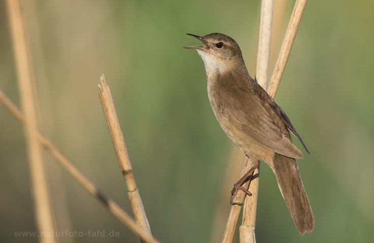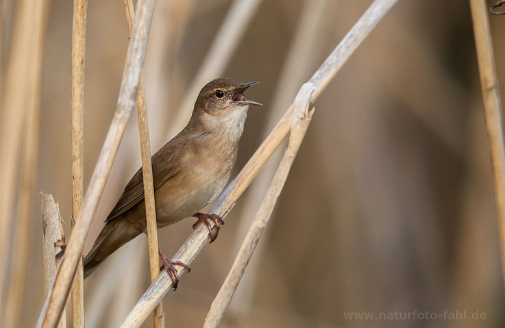 Rohrschwirl - den Drosselrohrsänger oft begleitend