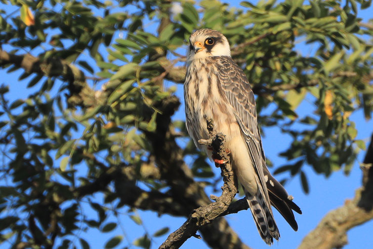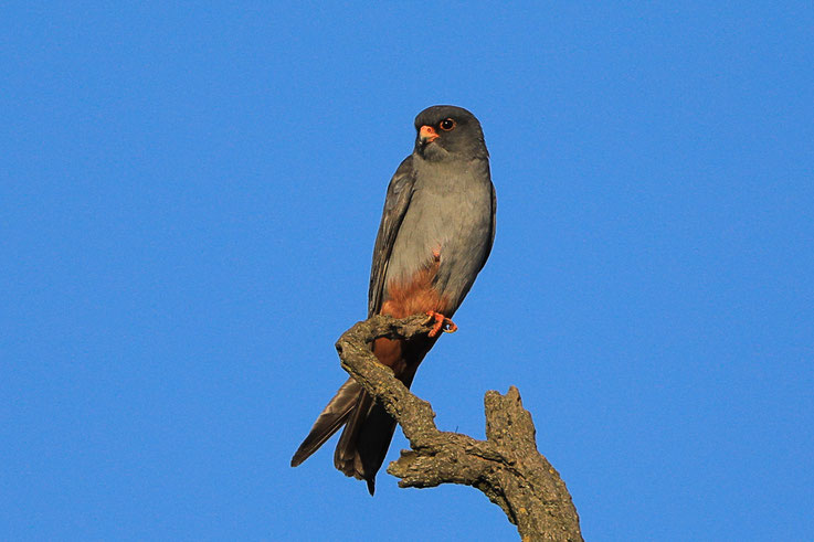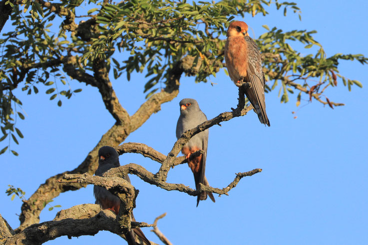 Dabei sind Rotfßfalken deutlich weniger scheu als Baum- und Turmfalken.