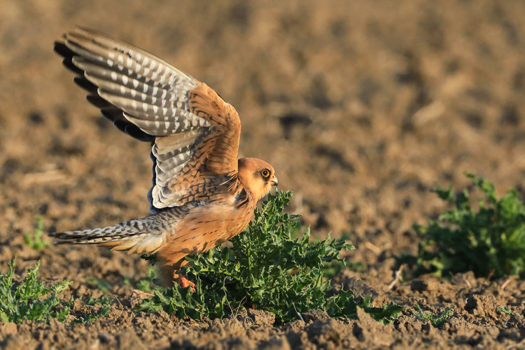 Der Rofußfalke erscheint zumeist im Früherbst im Oderbruch. Dann sind es Jungvögel, die an mäusereichen Feldern jagen und den Turmfalken Mäuse abschmarotzen. Sie jagen aber auch erfolgreich Großinsekten z.B. Libellen.