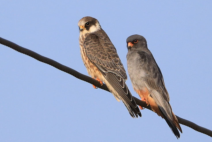 Um Rotfußfalken zu entdecken, ist es am erfolgreichsten Ende August bis Mitte September die Elektoleitungen abzusuchen, wo die Falken gern rasten. Mein bislang fühester Altvogel (ein