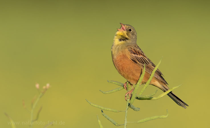 Zumeist hat er seine Singwarten im oberen Bereich der Baumkronen und ist daher selten zu sehen. Gelegentlich sieht man ihn aber auch in den angrenzenden Feldern singen. In Baum und strauchloser Landschaft fehlt diese Art.
